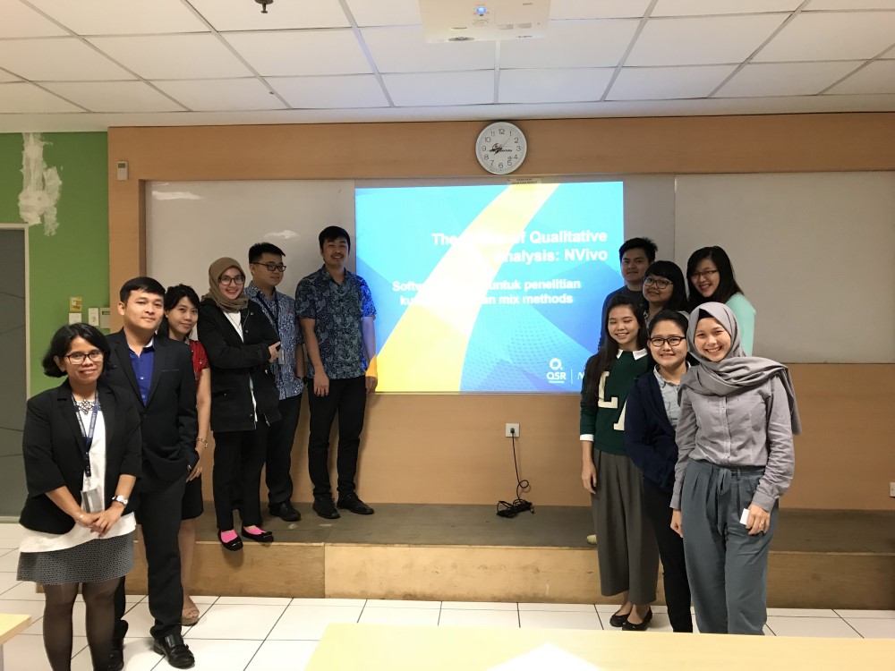 the NVivo software was demonstrated live for the masters of Bina Nusantara University's